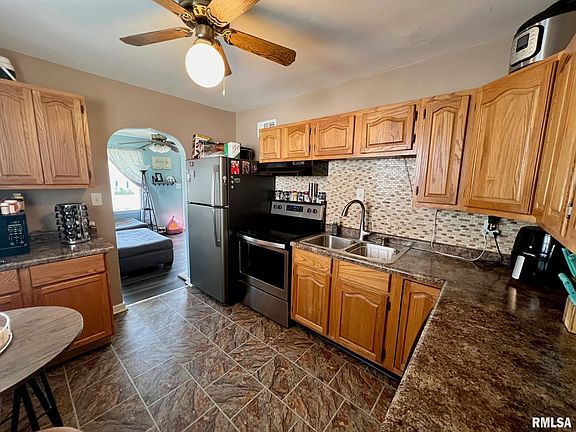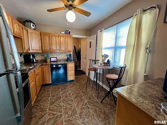 Charming 2 bed/ 1 ba near Illinois College! Such care has been given to this home with updated windows, HVAC, bathroom, appliances, flooring, fresh paint, landscaping, gutters, shed & patio! HUGE Liv Rm welcomes you with picture window, plenty space and new flooring in 2023. Kitchen has beautiful oak cabinets, newer countertops, black/stainless appliances & room for table! Full bath offers new Bath Planet tub/shower, updated vanity, ceramic tile and new plumbing in 2023! Master nearby is enormous with french doors out to the backyard & hidden closet bonus! Bonus den/office off Master or make it a walk in closet or Master Bath!! Second Bedrm near with closet and 2 windows for great light! 2Car garage, L shaped backyard with shed and natural privacy wall! Move Right In and Enjoy!
