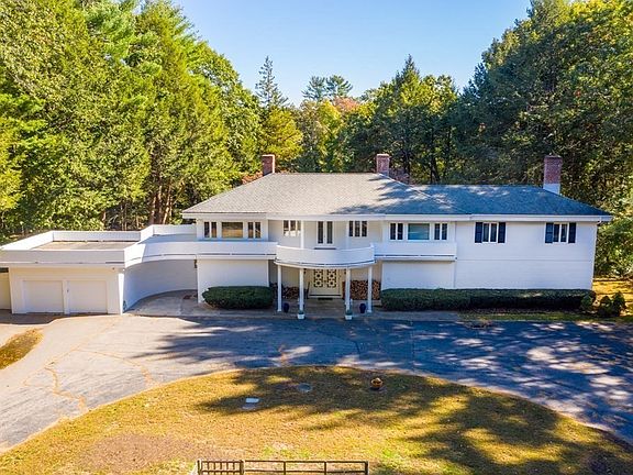 Nestled on a private lane, this mid-century residence features a striking setting on the banks of the Charles River with access to the adjacent Elm Bank trails. Enjoy exquisite river views from the step-down living room through expansive walls of glass an onto a heart-shaped patio. The granite kitchen features double ovens, a Viking cooktop, two dishwashers, wine chiller and breakfast area. Adjacent pantry/mudroom/laundry with half bath and access to garage. A study and spacious family room are also on the first floor. Upstairs consists of a fire-placed principal suite with second office and balcony over looking the patio, yard and river. Three additional bedrooms and a possible remote learning space, sitting room or nursery round out a flexible and spacious second floor. Just minutes from Wellesley Square and Needham and Natick Centers and part of Dover's highly rated school system. Appreciate the change of every season on this tranquil 1.7 acre estate with room for everyone.