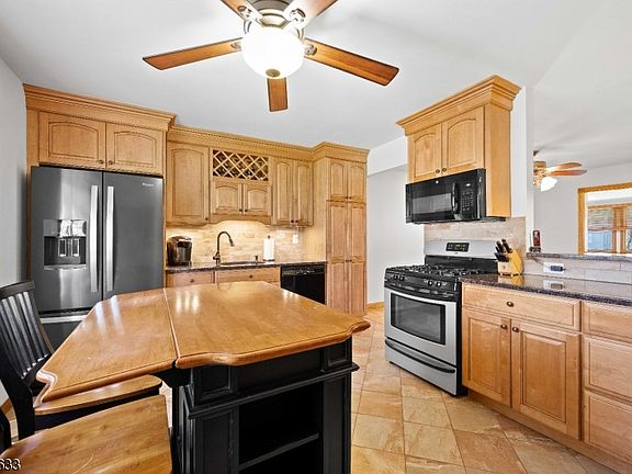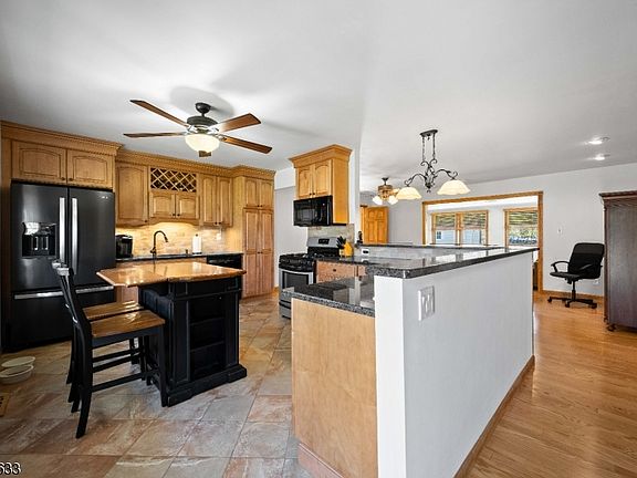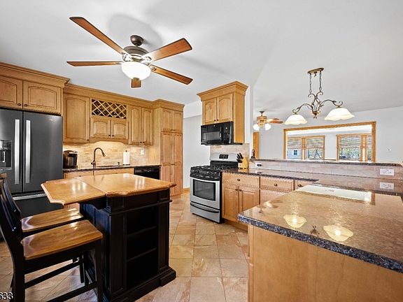 Spacious and updated. Center Island counter, solid Maple custom cabinets, Granite countertops, Refrigerator 2020,Micro2019. Hearth Stone Soap Stone wood/burn stove. Large Dining room and open Living rm. New Deck 2017. Large yard with storage building and additional patio (Patio furniture stays). Additional room can be used as Den, Office,etc. This Room has Glass slider to deck plus additional Pantry and Laundry area. Convenient one floor living and end of quiet Cul de sac. Priced to sell