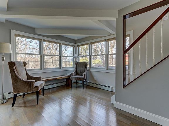 On Tranquil Setting With Hilltop Woodland And Water Views This Lovely Updated Raised Ranch Is Located In Harborfields SD#6. Main Level Boasts Generous Sized Vaulted Living Room With Stone Fireplace And Inlay Hardwood Floors, Dining Room W/ Coiiffed Ceiling , Kitchen With Stainless Steel Appliances, Sitting Room /Office With Sliders To Patio, Master Bedroom, 2 More Bedrooms, Full Bath And Half Bath. Above Ground Lower Level Features Picturesque Sitting Area , Large Family Room , Bedroom And Bath With Shower. Lower Level Ideal For Extended Family. Mint One Car Garage/Work Area. There Are Picture Windows And Beautiful Flooring Throughout. $4500. Tenant Is Responsible For Utilities . Small Pet May Be Considered. No Smoking . Tenant is Responsible For One Month Security And One Month Broker Fee