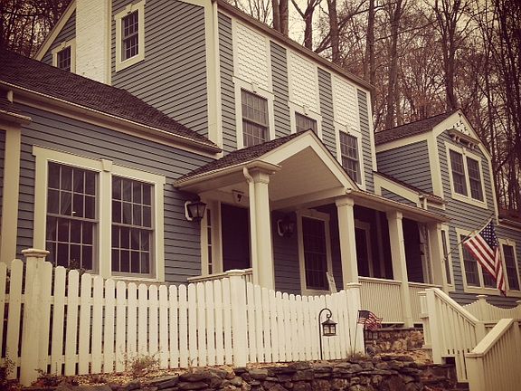 Circa 1807 bank house with almost 7 acres extending to and including river front. Incredibly charming home is juxtaposed with nature. Updated kitchen, baths and master suite. Pool with river views. Taking advantage of the picturesque surroundings, a gunite pool soaks in natural views while pool storage is placed above the two-car garage.