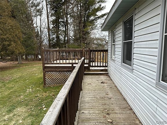 There are two first floor bedrooms, the largest of the two bedrooms could easily be used as a family room with access to the back deck. Additional features include hardwood flooring, pine trim, two staircases, on demand hot water, three heating zones, and a front porch. The single bay attached garage plus a 3 bay pole barn, with an overhead door. This property consists of two tax parcels, ID# 13.20-2-57.02 and 13.20-257.11 creating nearly 1 acre.