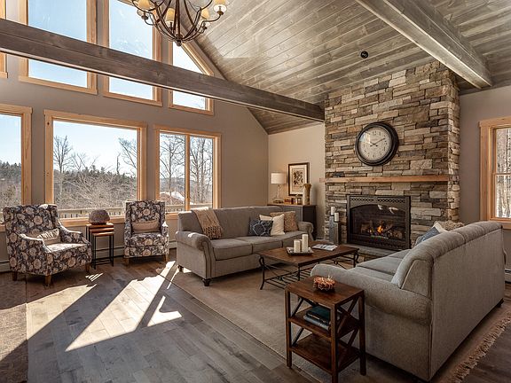 Newly constructed ski house located in the heart of Sunday River in the desirable Powder Ridge neighborhood less than 5 miles to the base lodges. This appealing south facing chalet style home offers 4 BD, 3 BA including a second floor primary bedroom suite, tiled shower and double vanities. The great room is open to the kitchen/dining area and features a cathedral ceiling, fireplace and an expansive windows. The lower level boasts a large mudroom to store all of your gear, a family room and a 4th bed/bunk room. A wrap around deck with a covered porch and second, side entry completes the home. Showcasing quality construction, this home will be ready for the ski season! (*Interior photos are of another similar completed home.)