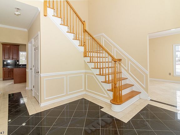 Exquisite sun lit colonial on a quiet cul-de-sac! This luxurious 5 bedroom, 3.5 bath is a dream home, graced by a grand 2 story entryway, sweeping staircase and beautiful marble flooring throughout! The layout is made for entertaining, the focal point being open plan kitchen and family room with fireplace, with doors to the deck and backyard. There is a formal dining room, elegant living room and bonus first floor bedroom with on suite bathroom. The master suite presents with a tray ceiling, ensuite bath with soaking tub and shower. Lower level has a large open space with bar, full bath and separate bedroom