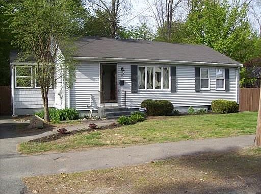 Wonderful, clean ranch on quiet side street with many updates including a gorgeous new kitchen with dark hardwood cabinets and all new appliances, a brand new sun room with cathedral ceiling, paddle fan and large slider leading out to a newer deck built to enjoy the peace of the private, cedar fenced yard. This home also offers a recently landscaped yard, beautiful new bathroom, large storage shed, raised garden bed, updated 200-amp electrical, mostly new plumbing-including the addition of laundry hookups in the basement, newer walkout basement entrance. This home offers plenty of storage, as well as hardwood floors in all three bedrooms and living room.Great location for commuting to routes 28, 93, 95 or the 240 or 12 bus lines. House sold in as is condition.