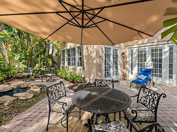 This Mediterranean Villa is located in the charming neighborhood of Villa D' Este in PGA National. Steps from both the Tom Fazio and Jack Nicklaus designed golf courses, the property sits on a quiet corner lot with no neighbors on three sides. Enjoy a spacious great room with fireplace, kitchen, breakfast room, morning room, and powder room on the first floor. All three bedrooms and two baths occupy the second floor. Best of all, the back patio area is perfect for entertaining with lush landscaping and a custom waterfall. The neighborhood pool with spa is just a short walk down the street.