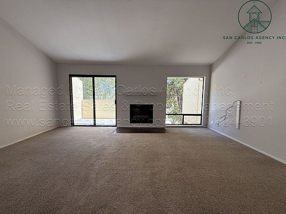 (GINCH) San Carlos Agency, Inc. offers this updated two bedroom, two and one-half bath Villa Via Joaquin condo within walking distance to all that downtown Monterey has to offer. The spacious two-level unit features high ceilings, newer carpet, ample storage space, two private decks as well as a patio area. The kitchen has quartz counters, electric cooktop, built in oven and microwave, refrigerator, dishwasher, disposal, adjacent breakfast nook area, and an abundance of cabinet space. The primary bedroom is downstairs with fireplace, en-suite bath (tub/shower combo) and access to private patio area. Both levels have gas log fireplace inserts with remotes. Washer and dryer in the unit and left as a courtesy to tenant. The unit comes with two garage parking spaces (gate secured, shared garage) and an additional locked storage space. Trash included in rental rate. No smoking. No pets. Contact San Carlos Agency, Inc.