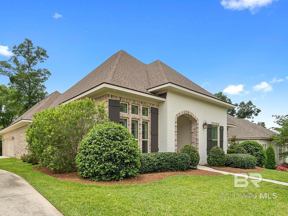 This stunning one level, four bedroom home in the picturesque Trentino neighborhood of Fairhope Alabama combines modern luxury with classic charm. Upon entering, you are struck by the spaciousness and elegance of the open concept living area, which feature 12 foot ceilings, hardwood floors, and large windows that flood the space with natural light. The gourmet kitchen is a chefs dream with large walk in pantry, high end appliances, granite countertops, and a center island that provides ample space for food prep and entertaining. The dining room features beautiful custom woodwork detailing and 12 foot ceilings. The four bedrooms are generously sized and offer plenty of closet space, while the primary suite is a true retreat with stand alone soaking tub, dual vanities, and large walk in shower. The meticulously maintained yard and beautiful brick courtyard feature a relaxing fountain you can enjoy while grilling on your screened in back patio. Plantation shutters, custom molding, custom built-ins in closets, tankless hot water, tumbled marble floors, gas log fireplace and high end finishes are just a few of the features of this exceptional home. Buyer to verify all information during due diligence.