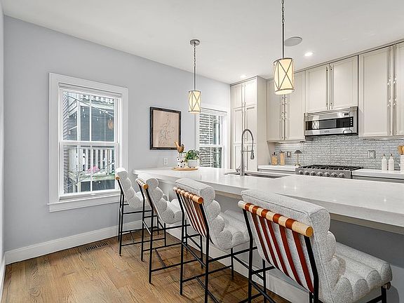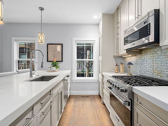 This stunning 3BD/2.5BA townhouse features a private roof deck and garage parking! The first level offers direct garage access, a bedroom with a custom Murphy bed, and private patio. The second floor boasts a beautiful kitchen with custom cabinetry, large island, Viking stainless steel appliances, and quartz countertops. The bright living room includes a gas fireplace, designated dining area, and a half bath. On the top level, the primary bedroom offers an ensuite bath and two custom closets, plus a second bedroom, full bath with a frameless step-in glass shower and laundry complete this floor. Access the roof deck via a skylight with hydraulic lift, featuring gas, water, electricity, and a speaker system with stunning city views. Additional features include private basement storage, hardwood floors, and proximity to South Boston’s best restaurants and shops. This is the one!
