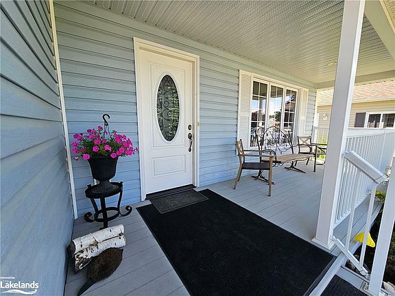 What a Lifestyle! This 2 bedroom, 2 bathroom bungalow boasts pride of ownership throughout. Covered front porch with composite decking, back deck has aluminum railings and glass panels. Features include a bright, unique open concept floor plan. Roomy kitchen w/dinette, S/S appliances, & lots of cabinets! Hunter Douglas blinds throughout. 4 season sunroom has walk out to the deck and retractable awning. Living room is welcoming with gas fireplace. The primary bedroom has a walk-in closet & 3 pc ensuite. For easy wash days, laundry has stackable units with separate laundry sink. Second bedroom could also be used as an office or a sitting room. 10 x 10 insulated shed with hydro. Gas hookups available, Sump pump 2023, Roof 2018, Twin 30 gal. water heaters 2024. Access to all the amenities of Park Place including a 12,000sq.ft Rec Centre, including salt water pool, gym, library and so much more! The blue water of Wasaga Beach not far away, trail system and Marlwood Golf Course. New Fees: Rent - $800.00 · Taxes for the LOT- $35.81 · Taxes for the STRUCTURE$- $156.16 · Water/Sewer: Billed Quarterly Total estimated monthly costs for the new tenant is $991.97