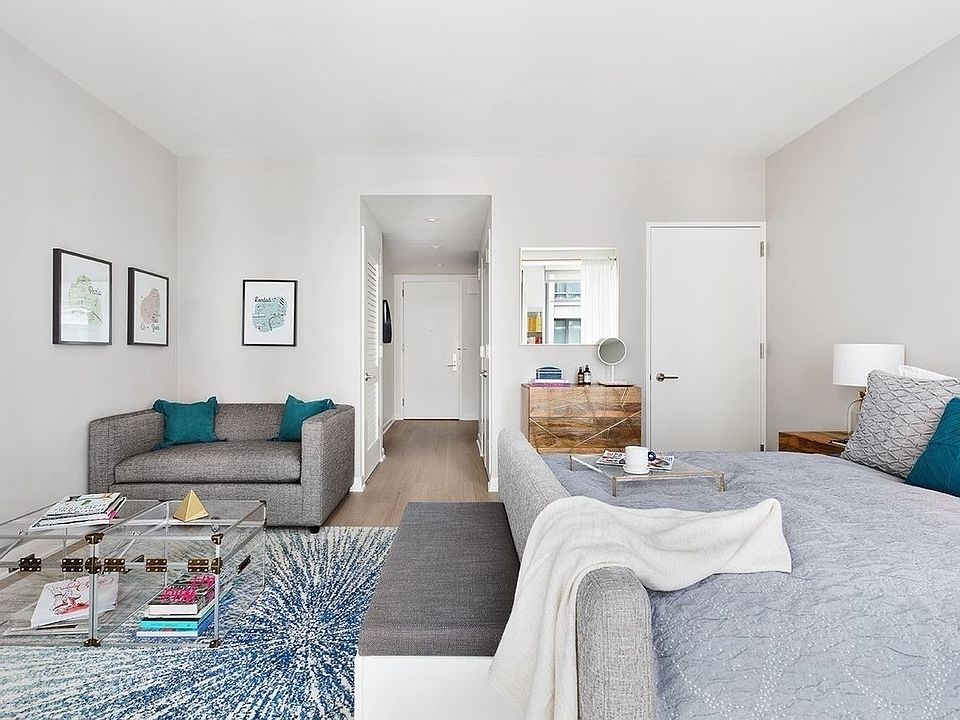 Starting at $4932.00 per month. This spacious Studio features floor to ceiling windows, a gourmet kitchen with stainless steel appliances and quartz countertops, an over-sized bathroom with a floating vanity, and a walk-in-closet. Apartment also contains an in-unit Bosch washer/dryer, high ceilings, and wood floors throughout! In the center of NYC's landmark district and bustling Flatiron neighborhood, 7 West 21st offers a tranquil sanctuary complete with a sunken garden, landscaped courtyard and 2 roof-top terraces equipped with TVs, grills and additional entertaining spaces. Residents also enjoy a state-of-the-art fitness center and yoga studio, multiple lounges, a game room with a golf simulator and a children's playroom room. The building includes a 24-hour concierge and is pet friendly. Pricing and concessions subject to change. Floor plans and photos may be of a representative unit.