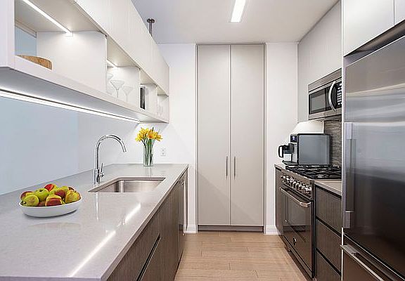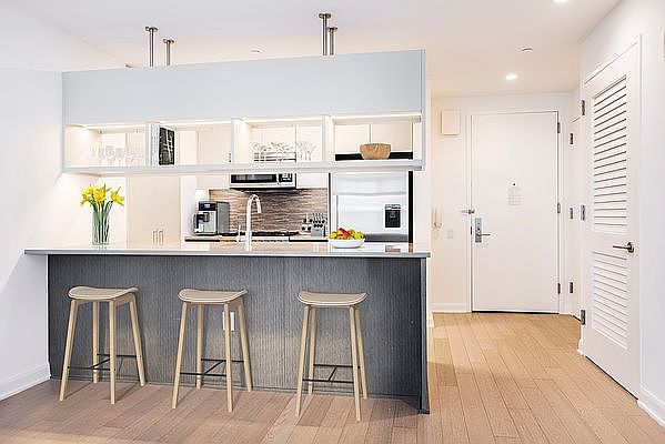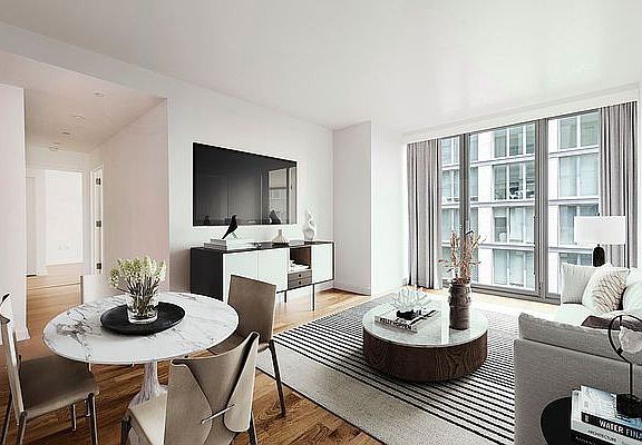 Starting at per month. Great two bedroom with dramatic floor to ceiling windows and a gourmet kitchen with stainless steel appliances, quartz countertops and eating bar. Apartment also includes a primary bedroom with large walk-in-closet and en-suite bath featuring an oversized glass enclosed shower, an in-unit Bosch washer/dryer, high ceilings, and wood floors throughout! In the center of NYC's landmark district and bustling Flatiron neighborhood, 7 West 21st offers a tranquil sanctuary complete with a sunken garden, landscaped courtyard and 2 roof-top terraces equipped with TVs, grills and additional entertaining spaces. Residents also enjoy a state-of-the-art fitness center and yoga studio, multiple lounges, a game room with a golf simulator and a children's playroom room. The building includes a 24-hour concierge and is pet friendly. Pricing and concessions subject to change. Floor plans and photos may be of a representative unit.