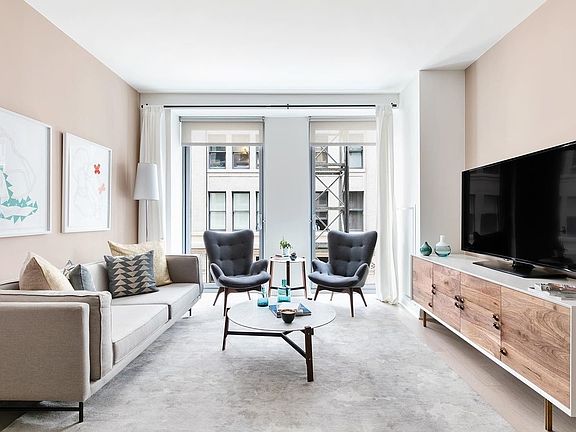 Well designed one bedroom featuring a gourmet kitchen with stainless steel appliances, quartz countertops and eating bar, an in-unit washer/dryer and wood floors throughout! In the center of NYC's landmark district and bustling Flatiron neighborhood, 7 West 21st offers a tranquil sanctuary complete with a sunken garden, landscaped courtyard and 2 roof-top terraces equipped with TVs, grills and additional entertaining spaces. Residents also enjoy a state-of-the-art fitness center and yoga studio, multiple lounges, a game room with a golf simulator and a children's playroom room. The building includes a 24-hour concierge and is pet friendly. Pricing and concessions subject to change. Floor plans and photos may be of a representative unit.