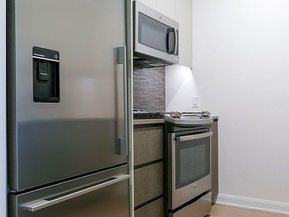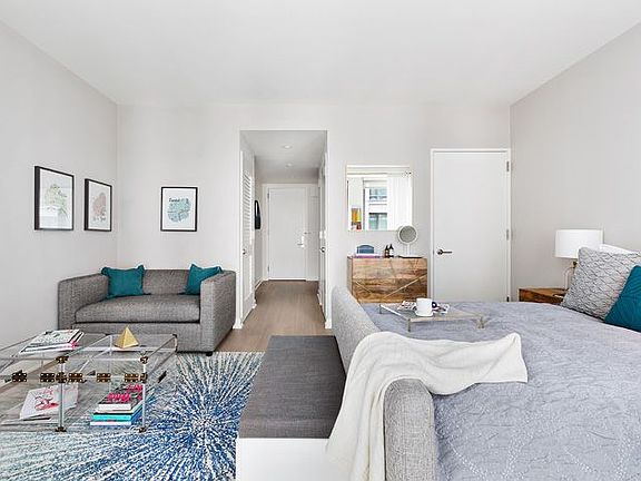 Starting at $5150.00 per month. Unique alcove studio with dramatic curved floor-to-ceiling living room window and flexible layout with distinct areas for sleeping and living areas. Apartment also features a gourmet kitchen with stainless steel appliances and quartz countertops, an over-sized bathroom with a floating vanity, and multiple closets. Apartment also contains an in-unit Bosch washer/dryer, high ceilings, and wood floors throughout! In the center of NYC's landmark district and bustling Flatiron neighborhood, 7 West 21st offers a tranquil sanctuary complete with a sunken garden, landscaped courtyard and 2 roof-top terraces equipped with TVs, grills and additional entertaining spaces. Residents also enjoy a state-of-the-art fitness center and yoga studio, multiple lounges, a game room with a golf simulator and a children's playroom room. The building includes a 24-hour concierge and is pet friendly. Pricing and concessions subject to change. Floor plans and photos may be of a representative unit.