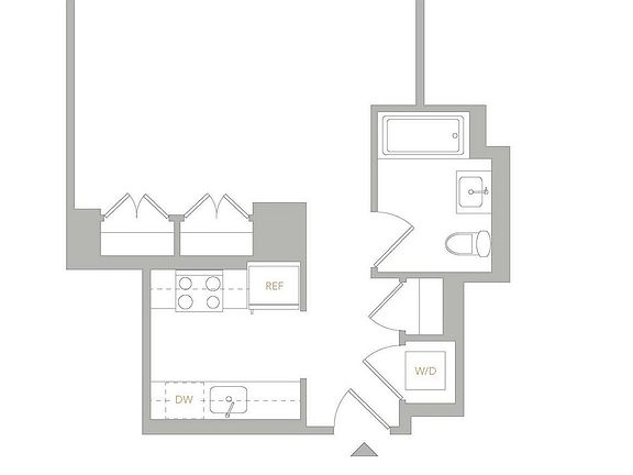 Unique alcove studio with dramatic curved floor-to-ceiling living room window and flexible layout with distinct areas for sleeping and living areas. Apartment also features a gourmet kitchen with stainless steel appliances and quartz countertops, an over-sized bathroom with a floating vanity, multiple closets, an in-unit Bosch washer/dryer, high ceilings, and wood floors throughout! In the center of NYC's landmark district and bustling Flatiron neighborhood, 7 West 21st offers a tranquil sanctuary complete with a sunken garden, landscaped courtyard and 2 roof-top terraces equipped with TVs, grills and additional entertaining spaces. Residents also enjoy a state-of-the-art fitness center and yoga studio, multiple lounges, a game room with a golf simulator and a children's playroom room. The building includes a 24-hour concierge and is pet friendly. Pricing and concessions subject to change. Floor plans and photos may be of a representative unit.