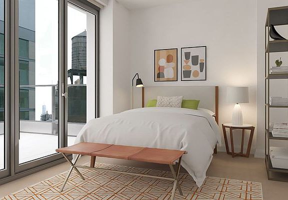Unique 2 bedroom with private patio. floor to ceiling windows, a gourmet kitchen with stainless steel appliances and quartz countertops, an over-sized bathroom with a floating vanity, and a walk-in-closet. Apartment also contains an in-unit Bosch washer/dryer, high ceilings, and wood floors throughout! In the center of NYC's landmark district and bustling Flatiron neighborhood, 7 West 21st offers a tranquil sanctuary complete with a sunken garden, landscaped courtyard and 2 roof-top terraces equipped with TVs, grills and additional entertaining spaces. Residents also enjoy a state-of-the-art fitness center and yoga studio, multiple lounges, a game room with a golf simulator and a children's playroom room. The building includes a 24-hour concierge and is pet friendly. Pricing and concessions subject to change. Floor plans and photos may be of a representative unit.