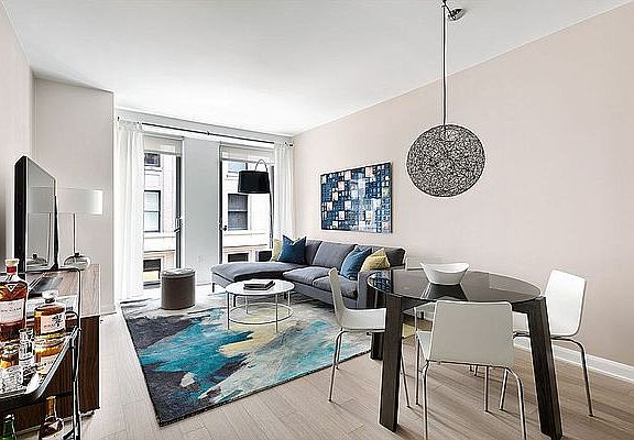 12 months at $5719.00 per month. Well appointed 1 bedroom with oversized windows showcasing open views across 22nd street. Apartment features a well-appointed home features a gourmet kitchen with stainless steel appliances, and quartz countertops, an in-unit washer/dryer and wood floors throughout. In the center of NYC's landmark district and bustling Flatiron neighborhood, 7 West 21st offers a tranquil sanctuary complete with a sunken garden, landscaped courtyard and 2 roof-top terraces equipped with TVs, grills and additional entertaining spaces. Residents also enjoy a state-of-the-art fitness center and yoga studio, multiple lounges, a game room with a golf simulator and a children's playroom room. The building includes a 24-hour concierge and is pet friendly. Pricing and concessions subject to change. Floor plans and photos may be of a representative unit.