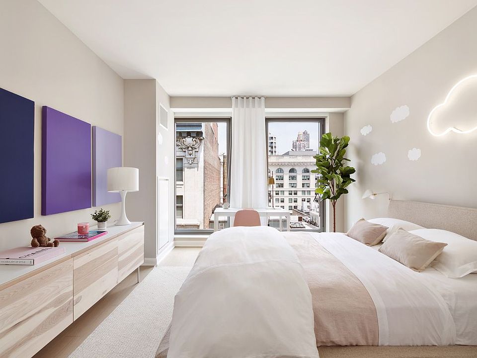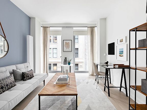 LIMITED TIME ONLY, 1 MONTH OP This well appointed 2 bedroom features a fully equipped gourmet kitchen including stainless steel appliances, stone countertops, eating bar and pantry, and an in-unit washer/dryer. Apartment also includes a luxurious primary bedroom suite with a large walk-in- closet and bath with double vanities and glass enclosed shower. In the center of NYC's landmark district and bustling Flatiron neighborhood, 7 West 21st offers a tranquil sanctuary complete with a sunken garden, landscaped courtyard and 2 roof-top terraces equipped with TVs, grills and additional entertaining spaces. Residents also enjoy a state-of-the-art fitness center and yoga studio, multiple lounges, a game room with a golf simulator and a children's playroom room. The building includes a 24-hour concierge and is pet friendly. Pricing and concessions subject to change. Floor plans and photos may be of a representative unit.