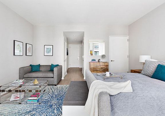 This spacious studio, 1 bathroom unit features a fully equipped kitchen including stainless steel appliances, an over-sized bathroom with a floating vanity, excellent closet space, and in-unit Bosch washer/dryer. Enjoy this brand-new open floor plan that includes a wall of windows and Oak wood floors throughout! Views facing the elegantly curated garden will create a more peaceful aesthetic in your home. Bask in the higher floor lighting that seamlessly pours in throughout your home! Living in the NYC's landmark district and bustling Flatiron neighborhood, 7 West 21st offers a tranquil sanctuary resembling an oasis with a sunken garden, landscaped courtyards and roof-top terraces equipped with TVs, grills and additional entertaining spaces. While there are plenty of shopping and dining options in the area, there are abundant stay-at home amenities with a state-of-the-art fitness center and yoga studio, plenty of lounges, media and private lounges to host events, game rooms with a golf simulator and a children's room. The building has 24-hour concierge and doorman, with a leasing office open seven days a week for optimum convenience. Experience 7 West 21st's distinct serene environment $1,000 Security Deposit special for qualified renters. *$4,270 gross rent, 2 months free rent, please contact leasing office for lease terms and conditions. First time residents only.