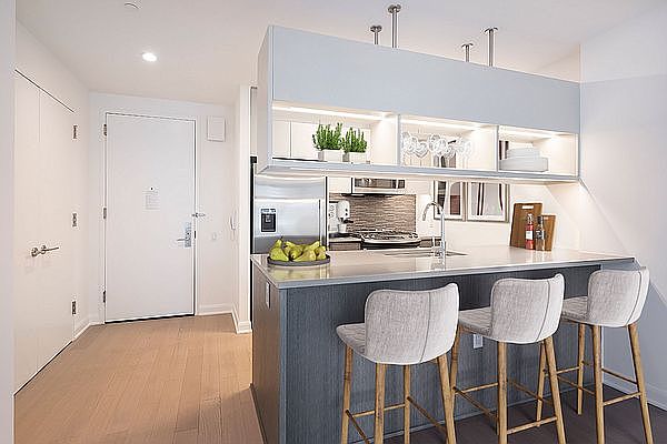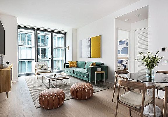 12 months at $5966.00 per month. Spacious one bedroom featuring a flexible layout with space for a dedicate dining or home office nook, gourmet kitchen with stainless steel appliances, quartz countertops and eating bar, an in-unit washer/dryer and wood floors throughout! In the center of NYC's landmark district and bustling Flatiron neighborhood, 7 West 21st offers a tranquil sanctuary complete with a sunken garden, landscaped courtyard and 2 roof-top terraces equipped with TVs, grills and additional entertaining spaces. Residents also enjoy a state-of-the-art fitness center and yoga studio, multiple lounges, a game room with a golf simulator and a children's playroom room. The building includes a 24-hour concierge and is pet friendly. Pricing and concessions subject to change. Floor plans and photos may be of a representative unit.