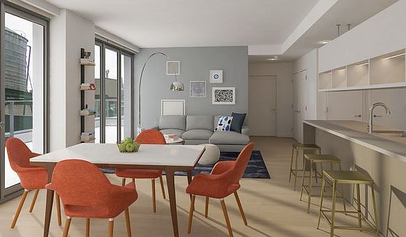 Breathtaking 2 bedroom plus den features walls of dramatic floor to ceiling windows including in the light filled den space. Apartment also boasts a gourmet kitchen with stainless steel appliances, stone countertops, an eating bar and pantry, an in-unit washer/dyer, and a primary bedroom suite with large walk-in closet and bathroom with double vanities and oversized glass enclosed shower. In the center of NYC's landmark district and bustling Flatiron neighborhood, 7 West 21st offers a tranquil sanctuary complete with a sunken garden, landscaped courtyard and 2 roof-top terraces equipped with TVs, grills and additional entertaining spaces. Residents also enjoy a state-of-the-art fitness center and yoga studio, multiple lounges, a game room with a golf simulator and a children's playroom room. The building includes a 24-hour concierge and is pet friendly. Pricing and concessions subject to change. Floor plans and photos may be of a representative unit.