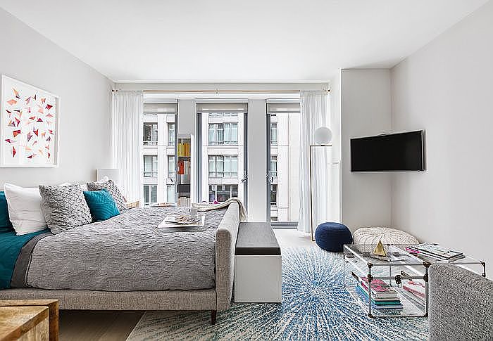 Starting at $5700.00 per month. This spacious Studio features floor to ceiling windows, a gourmet kitchen with stainless steel appliances and quartz countertops, an over-sized bathroom with a floating vanity, and a walk-in-closet. Apartment also contains an in-unit Bosch washer/dryer, high ceilings, and wood floors throughout! In the center of NYC's landmark district and bustling Flatiron neighborhood, 7 West 21st offers a tranquil sanctuary complete with a sunken garden, landscaped courtyard and 2 roof-top terraces equipped with TVs, grills and additional entertaining spaces. Residents also enjoy a state-of-the-art fitness center and yoga studio, multiple lounges, a game room with a golf simulator and a children's playroom room. The building includes a 24-hour concierge and is pet friendly. 12 and 24 month lease options available. Pricing and concessions subject to change. Floor plans and photos may be of a representative unit.