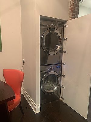 Large and bright quintessential NYC loft with exposed brick, high tin ceilings and a large private patio! Ideal for live/work. Just one flight of stairs up; nearly 1,400 sq. ft.; hardwood floors; floor-to-ceiling windows facing 24th Street (with direct views of Eataly across the street); SS appliances including including double-door refrigerator, oven, microwave and dishwasher; LG washer/dryer in unit; extra-large master bedroom with en-suite bath; separate powder room; and a quiet, private patio in the rear of the unit (with access to the patio through either the master bedroom or the hallway). The building is located steps away from Madison Square Park and Eataly, only a few blocks from Whole Foods and Trader Joe's, and easily accessible to almost every subway line. The building has a live-in super. *The unit may be delivered furnished upon request for a small additional fee.