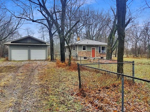 Cozy home on a corner lot + 2.46 acres, just minutes from the Indiana Toll Road! Living room features hardwood floors and built in book shelves. Detached garage has storage space in the attic (pull down attic ladder). Fenced in front yard. Enclosed basement with washer and dryer hook ups, and space for extra storage!