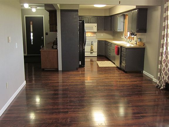 Large house located on over 3/4 acre lot in Garrison by the Airport. At over 1,500 sqft this home features a large living room w/woodstove, open kitchen and dining area, nice master bedroom w/full bath, main floor den that walks out to patio, main floor laundry w/bath. The full finished basement includes 3 bedrooms w/egress windows, family room, a 1/2 bath, and plenty of storage. Outside there is an attached double garage, steel siding and steel roof, shed, and plenty of room to build a second garage or shop.