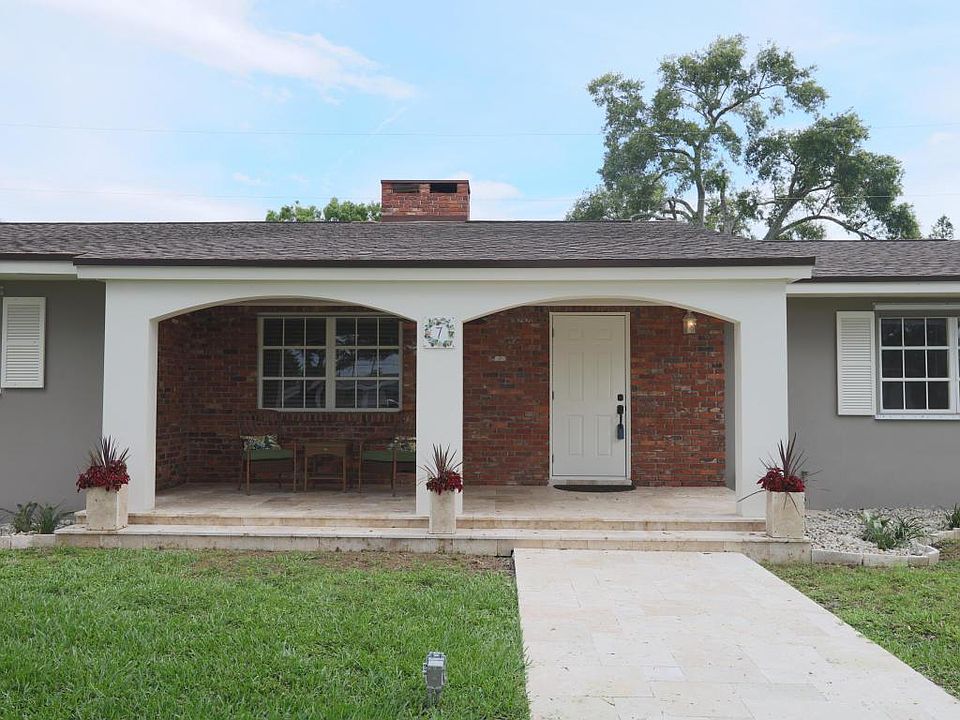 : Updated 4 bed 4 bath spacious one level home. Bedrooms are large, can be two masters or in law space. Travertine flooring and hardwood, no carpet in home. Kitchen, roof, water heaters, bathrooms, pool ALL updated in 2018. Amazing pool area and patio in the back and side with cozy front porch. Incredible amount of storage space with 3 car garage and massive driveway.