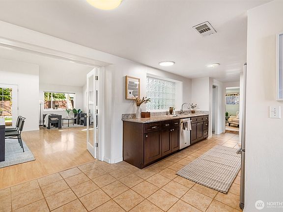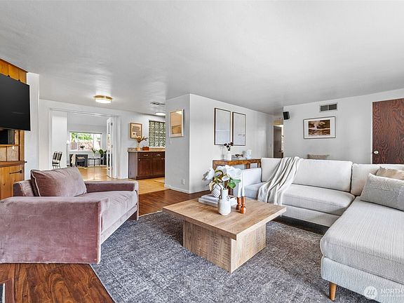 Enjoy one-level living in this spacious 4 bed, 1.75 bath rambler! Two generous living rooms—one with a gas fireplace, the other with a cozy gas stove—provide options for multi-generational living, guest accommodations, or future rental income. The remodeled kitchen (2016) flows into a vaulted-ceiling living and dining area filled with natural light. Outside, enjoy a massive front yard with DADU potential (buyer to verify), serene backyard with patio for entertaining, RV/boat parking, attached garage, and carport. Major updates include a new roof (2020) and re-lined sewer (2024). Just 2 miles to Boeing, with quick highway access—but you'd never know it from the peace and quiet. A rare gem with room to grow with great investment potential.