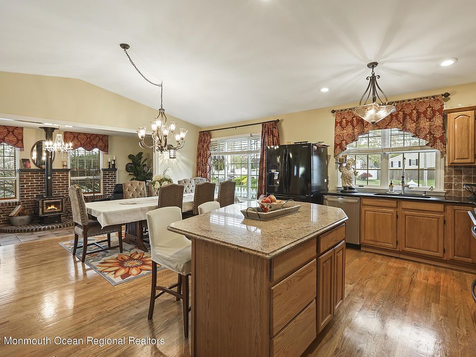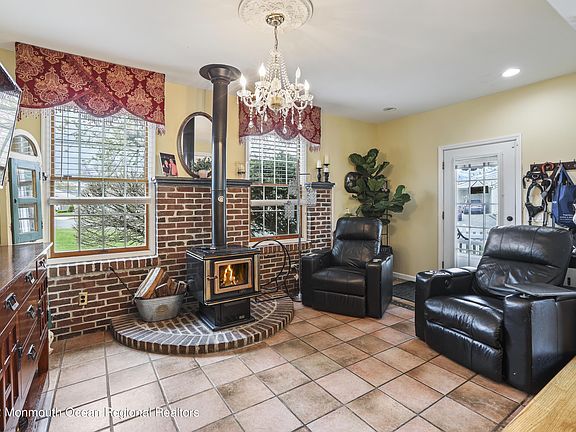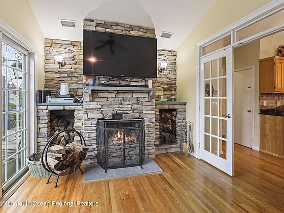 Stunning 3 bedroom Ranch is newly updated throughout. Welcoming, gated, patio greets your guests. Open floor plan features newer gourmet kitchen surrounded by great room & living room, both w/Fireplaces! Kitchen has gas stove & electric wall oven for your cooking convenience. Attractive granite center island w/contrasting stone countertops make the Kitchen the entertaining center piece. Handsome coffee/expresso bar area w/sink completes the kitchen. Huge eat-in area accommodates a full dining room furniture set. Full bath is exquisitely remodeled w/stunning tile work & Jacuzzi Tub. Fenced in backyard is built for entertaining w/paved area & plenty of grass to play ball. Storage shed w/electricity. Large unfinished basement w/newer HWH & french drains. Hook up for generator by back door!