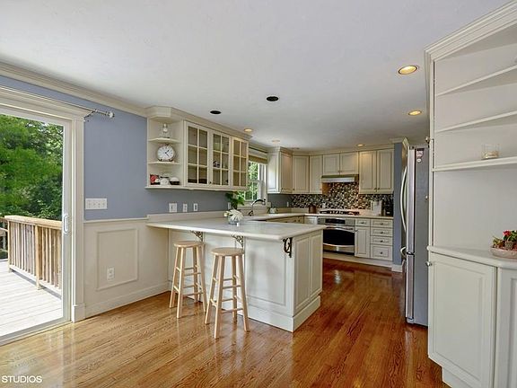 West Plymouth location you're looking for! Beautiful landscaped yard with a solid wood fence for a privacy and three oversized custom wood sheds for a workshop and storage. House looks recently built, numerous renovations - Converted to Gas, new roof, new windows, Hardwood floors throughout, two tier deck overlooking a private yard lined with hardwood trees. Look to the left and a beautiful patio with Fire Pit and Compass Rose for the cool evenings. First level open floor plan space connecting the Kitchen and Living Room. The Kitchen has a beautiful tile back splash and bright white Corian countertops in pristine condition which overlooks the slider to the Deck. The Living room has a custom tile Fireplace and with flanking built-in bookshelves to frame your flat screen and beautifulPlantation shutters. A finished 21 x 19 lower level with a bulkhead access and Laundry room, plumbed out for a additional bath. Move-in ready with all the upgrades done for You! Come visit!