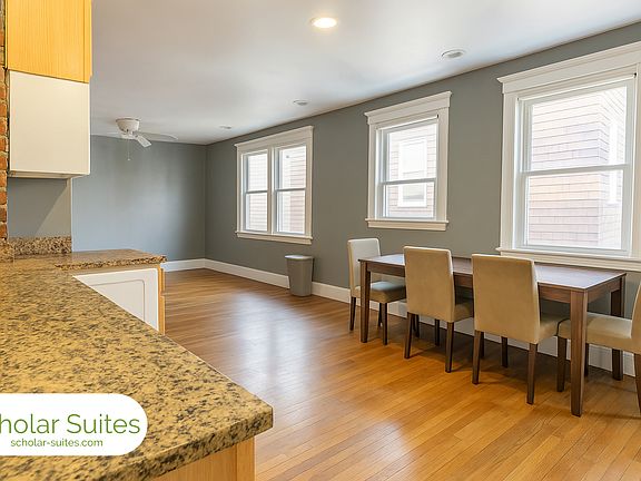 All common spaces in the house - including the living room, dinning area, kitchen, and bathrooms- are furnished and professionally cleaned (bi-weekly) included with rent. The unit also features in building laundry. Exclusively for students, this unit fosters a community-focused living environment ideal for those seeking affordable housing and like-minded roommates. Included with rent: Bi-weekly cleanings of all common spaces, all utilities, WiFi, furnished common spaces. Contact us to learn more about bedroom furnishing and pre-ordering kitchen and bedding essentials. Interested in rooming with friends? Contact us to learn which other bedrooms in this unit are still available. * No Smoking * No Pets