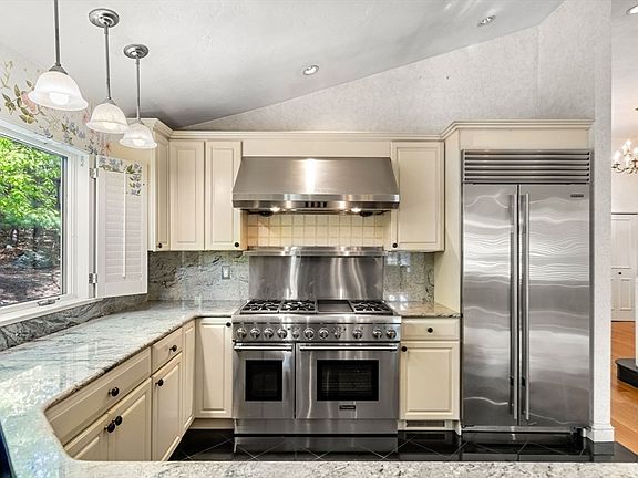 - Features: Vaulted Ceiling(s), Flooring - Stone/Ceramic Tile, Window(s) - Picture, Countertops - Stone/Granite/Solid, Breakfast Bar / Nook, Recessed Lighting, Stainless Steel Appliances, Gas Stove, Lighting - Pendant