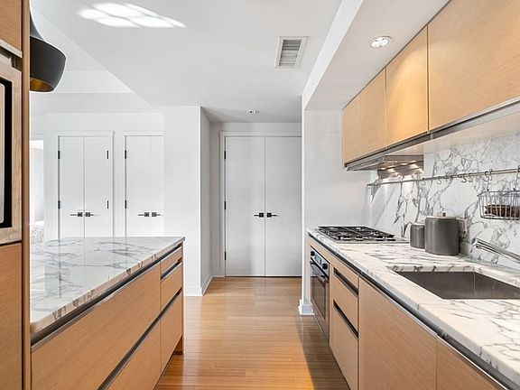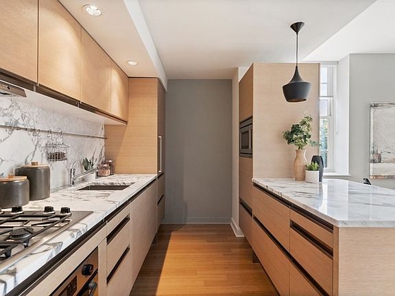 The perfect pied-à-terre in the best part of the South End! The unit features a welcoming foyer leading to a large open living/dining room with high ceilings, plenty of natural light, designer light fixtures and handsome hardware. The open kitchen includes Calcutta marble counters/backslpash, blond oak cabinetry, Bosch wall oven & dishwasher, retractable Best hood, Sub-Zero frig, & built-in microwave. There is a generous sized primary bedroom with an abundance of built out closets and an opulent en-suite marble bath. The second bedroom/den does not have a closet but is large enough to accommodate a queen sized bed. Other features include a powder room off the foyer, bamboo floors, in-unit laundry and one garage parking space (included in the price). The Phillips Starch designed common areas of the D4 condo complex are both impressive and timeless in their design. A boutique style building which is impeccably kept, includes a daily on site super (9:00-3:00) as well.