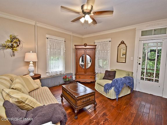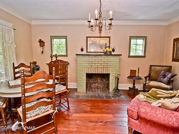 Farmhouse living at its finest! Nestled on OVER 6 private acres with 1100ft of peaceful creek frontage, this property offers a rare combination of charm, character, and convenience, just minutes to town and only 15mins to Routes 33 & 80. The 3bd farmhouse features a Kitchen with a CUSTOM slate island and exposed beam ceiling, a cozy Living Room with hardwood floors, and a Dining/Family Room highlighted by a BRICK FIREPLACE with a slate mantel. Upstairs, you'll find 3bds, including one with a PRIVATE BALCONY and HOT TUB overlooking incredible views. The property also includes a classic barn, perfect for storage, hobbies, or future projects. Whether you're looking for a serene retreat or a place to make your homestead dreams come true, this farmhouse is the perfect blend of rustic beauty and modern convenience.