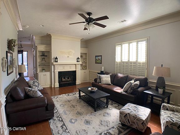 - Bookcases, Ceramic Tile Shower, Commode Room, Crown Molding, Eat-in Kitchen, Granite Counters, High Ceilings, Kitchen Island, Open Floorplan, Pantry, Walk-In Closet(s)