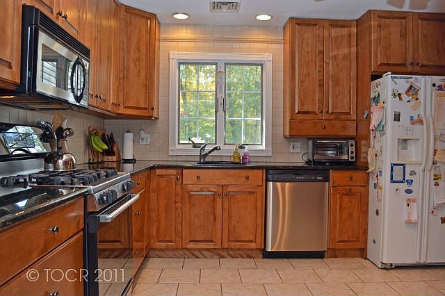 this 3 bedroom, 2.5 bath ranch situated on a cul de sac conveniently located within walking distance to all 3 schools, library, crestwood park, town, and transportation offers easy one floor living with a full finished basement featuring a brick faced woodburning fireplace, powder room, laundry room, and sliders to patio area and backyard. entry opens to a large living room, dining room w/ decorative chair rail, modern eat in kitchen w/ granite counters, cozy, sunfilled family room with sliders to a large deck overlooking a heated pool and backyard. the two bedrooms, full hall bath, masterbedroom, and masterbath complete the first level. new roof, new siding, new furnace, newer hwh, hardwood floors, and perfect location make this your ideal home. One year home warranty. - Basement: full fin, fpl, pr, laund rm