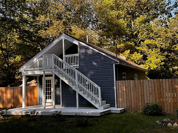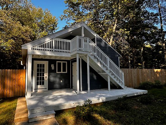 Tucked away on a serene 1/2 acre wooded lot in Lyman, ME, this charming one-bedroom cottage, built in 2018, is still like new. Perfect for year-round living or as a short-term rental, this home offers modern comforts with vinyl plank flooring and granite countertops. The energy-efficient mini-split heating and cooling system ensures comfort throughout the seasons. Enjoy the convenience of a stackable washer and dryer and the tranquility of quiet summer evenings on your quaint balcony, listening to the loons on nearby Kennebunk Pond. Located just 15 miles from Wells beaches and a two-minute walk from Kennebunk Pond, ideal for ice fishing or kayaking, this property also features a fenced yard with plenty of room to grow.  OPEN HOUSE on Saturday, September 7th from 12:00-2:00.
