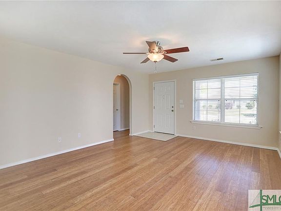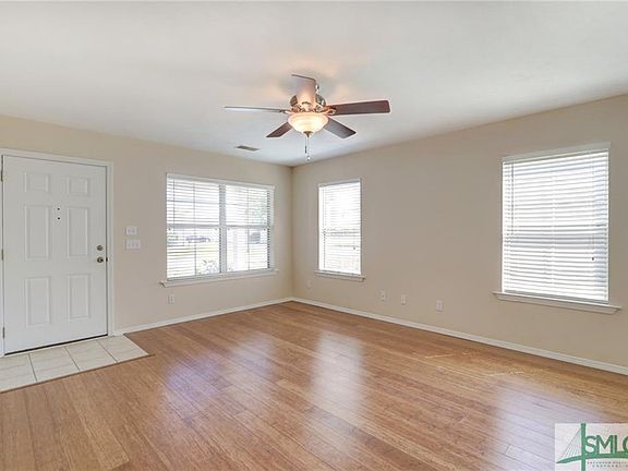 This is the perfect size home for a first time buyer or someone downsizing. One story with 3 bedrooms, 2 baths and a large screened porch overlooking the private back yard. The detached 2 car garage on the lane provides covered parking and extra storage. The homes' features include new neutral interior paint, stainless appliances, quartz countertops, tile backsplash, bamboo floors in living area and master bedroom, walk in shower in master, gutters and covered front porch. Close to amenity center with pools, playground, fitness center and clubhouse. Community is gated and close to Ga Port, Gulfstream, JCB and airport. Vacant and move in ready...dont wait too long to see this one..