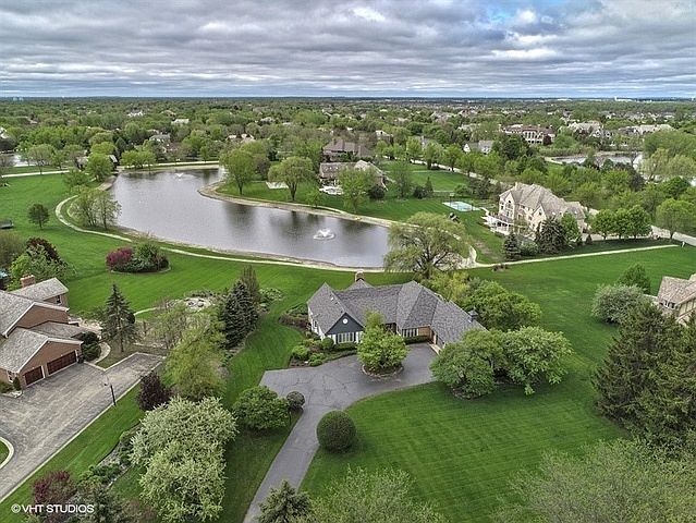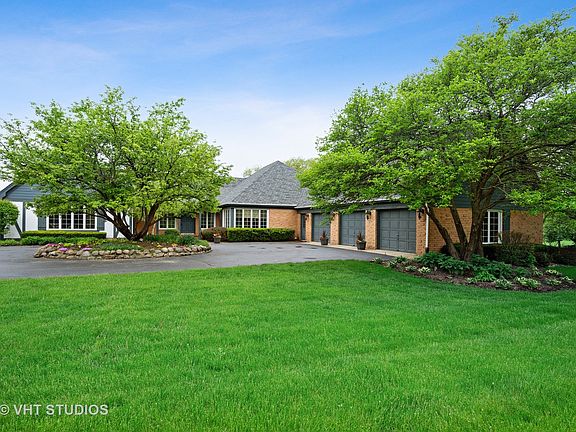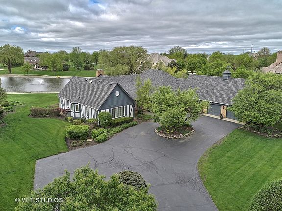 Incredible South Barrington waterfront living set on 1.6 professionally landscaped acres in Crabtree Trails. This walkout ranch features formal and informal living spaces with stunning views throughout. Offering floor to ceiling windows, vaulted ceilings, skylights, and open floor plan ideal for entertaining. Featuring 5 bedrooms, 4.1 baths and full finished walk-out lower level. Master bedroom with views of lake, plantation shutters, and spacious walk-in-closet. Luxury master bath with separate vanities, separate shower and jetted tub. Gorgeous sun room with views of sparkling lake. Walk-out lower level has enormous rec room with fireplace, second kitchen, game room, bar, fifth bedroom, full bath, and ample storage space. Ideal flow for indoor and outdoor entertaining with multiple exterior access points, screened porch, and large patio. Three car garage with built-in cabinets. Lawn with sprinkler system. New roof, windows, and alarm system installed in 2018.