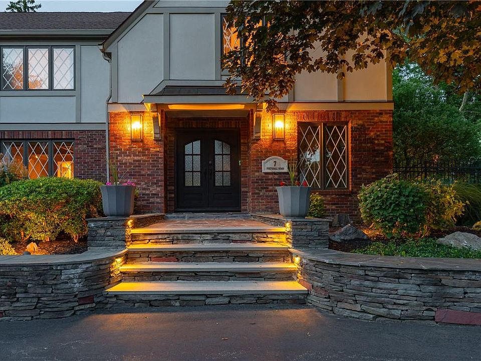 Custom One-of-a-Kind Builder-Owned Masterpiece. This extraordinary 4-bedroom, 4 ½-bathroom home, custom-built in 1986, stands as a testament to timeless elegance. As a single-owner residence, it boasts an extensive list of high-end upgrades and unique features. The home welcomes you with a grand circular driveway and charming stone walls. It features lifetime architectural roof shingles and a covered gutter system for superior durability. The exterior combines classic brick siding with new Hardboard siding, stucco and copper roof overhangs. Elegant Pella architectural windows enhance both aesthetics and energy efficiency. Enjoy the convenience of municipal water, sewer, natural gas heating and cooking, along with on-demand hot water. The interior showcases exquisite hardwood and ceramic flooring, custom built-ins, and detailed three-piece trim throughout. Two full masonry gas fireplaces add warmth and ambiance. The sunken cathedral skylit living room features a distinctive brick Trombe wall and a gas fireplace, while the large windowed dining room and sitting room/den seamlessly connect to the living room. Sunken, beamed family room with built-ins and another gas fireplace sits adjacent to the eat-in kitchen. The kitchen includes high-end built-in appliances such as a double oven, side-by-side refrigerator, and gas cooktop. Three generously sized bedrooms on the second level including a princess suite, and custom, newly renovated bathrooms. The master bedroom suite, located on a separate level, offers a private sitting room/office, an expansive custom bathroom, and a 20 x 20 walk-in closet with detailed ceiling and trim. Light-filled sunroom with full folding glass doors opens to an outdoor kitchen gazebo area. The fenced rear yard features large koi ponds, stone walkways, and a spacious travertine patio. Enhance your evenings with gas lantern/torches, a fire-pit, and an inground gas-heated hot tub.