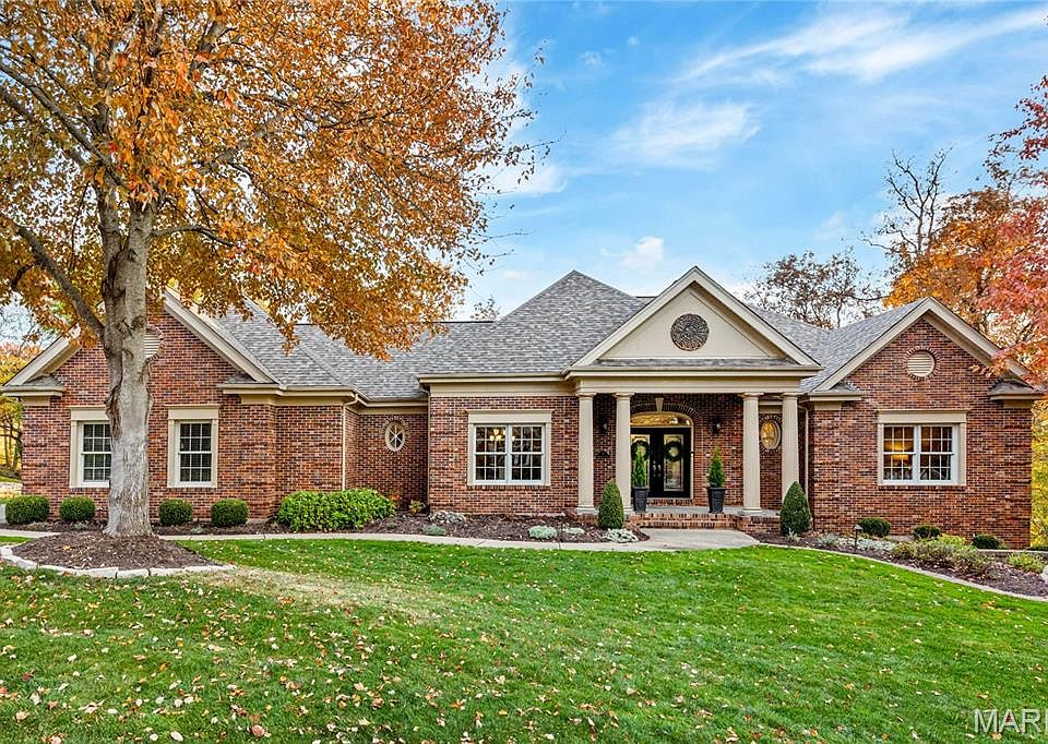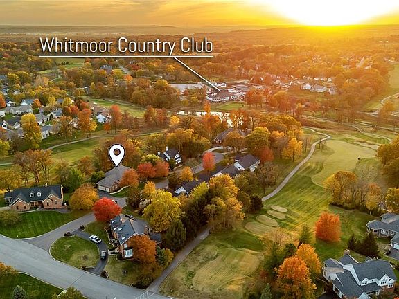 Spectacular full-brick atrium ranch built by JL Wise, ideally situated on the grounds of Whitmoor Country Club. This Homer Award–winning home showcases exquisite trim work, custom built-ins, and oak hardwood floors throughout the main and lower levels. A dramatic covered porch with architectural columns and leaded-glass double doors opens to the formal dining room and an impressive great room featuring a marble fireplace, flanking built-in bookcases, and expansive windows overlooking the 10th hole of the South Course. The designer kitchen offers custom knotty alder cabinetry, granite countertops, premium appliances, and flows seamlessly into the sun-filled breakfast room with atrium doors leading to a private trex-deck. The spacious primary suite features a wide bay window and a luxurious bath with shower spa and freestanding soaking tub. An additional ensuite bedroom completes the main-level living quarters. The walk-out lower level includes a recreation room with floor-to-ceiling brick fireplace and wet bar, bedroom, guest suite. Set on a half-acre cul-de-sac lot with two trex-decks, a paver patio, and hot tub, this home offers exceptional indoor-outdoor living in a premier golf community.