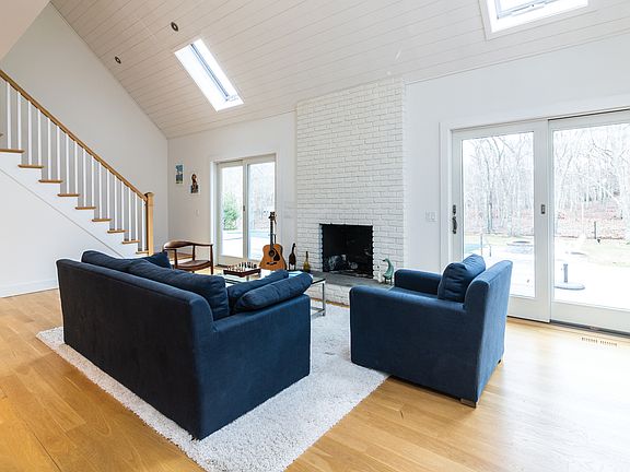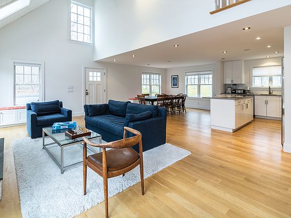 Rental Registration #: 18-2118 New to the market, this crisp, clean and sleek three bedroom, three bath home with a bonus bedroom is located on a secluded cul-de-sac. Gut renovated, it has open living and dining areas with double height ceilings. All bedrooms are en suite with full, luxurious baths; the master bath features a soaking tub and large steam shower. Two junior masters with en-suite baths are located on the first and second floors. Outdoors is an all-new backyard oasis with expansive decking, privacy and deer fencing, bluestone patio, 60' pool, a large hot tub, fire pit, large outdoor shower and various entertainment areas. Adjacent to wooded preservation land in front and back. Close to waterfront restaurants and bay beaches where kayaks and paddle boards can be launched..