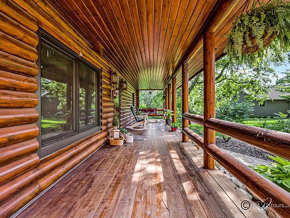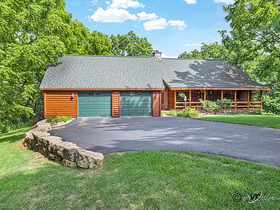What better way to enjoy the natural beauty of The Galena Territory than in this lovely log cabin? This home is situated on a 1.28-acre end lot in the cul-de-sac of Wildflower Rim. The exterior boasts nicely landscaped grounds, expansive patios with a built-in fire pit and hot tub; perfect for stargazing and outdoor entertaining. A 2.5 car garage includes an upstairs attic loft with plenty of room for storage. The paved driveway was engineered and installed with beautiful rock work. Inside are 3 bedrooms and 3 bathrooms, one located on each floor. The top level is a loft bed and bath with a huge bay window, currently used as the master; the main floor has a recently updated kitchen, great room with lots of natural light and a stone floor-to-ceiling fireplace, laundry, plus bed and full bath. The lower level is perfect for guests with bed, bath, living area, bar and shuffleboard table and walk out to back yard patio. The property is secluded in summer months with a lovely canopy of trees and provides winter views of Shenandoah and valley to the east. Property will be sold with furnishing via a Bill of Sale.