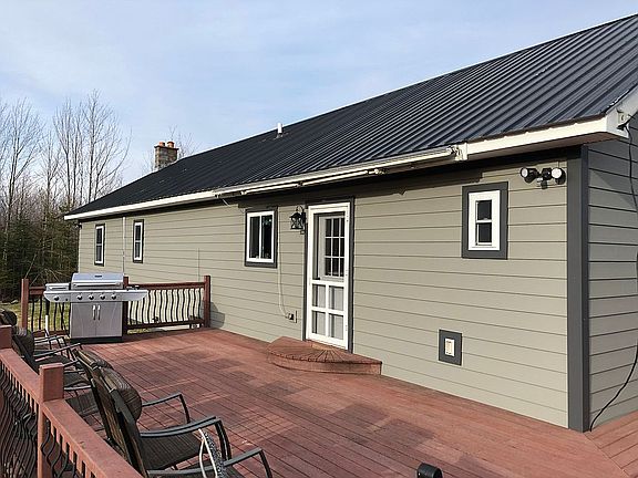 2001 quality built on 5 acres that is partially wooded, off paved road, 1 mile from town, 3 miles from hospital, 9 miles from Stowe, 33 miles from Jay Peak, 3 miles from Green River Reservoir, has 20kw solar, 15kw generator, 2 flue chimney for oil and secondary heat, outside wood boiler, primary heat oil, well and back up spring, roof is tin and added plywood underneath 5 years ago with ice and water shield, siding redone 2020 with 7" insulated vinyl, awning on back deck which is made of trex, hot tub new in 2019 on concrete slab, gas line for gill attached to tank, outside LED lighting, Blink camera system, central vac in main house, 3 bedroom 2 1/2 bath upstairs with in law apartment downstairs which has full kitchen, washer drier, bedroom and living room with walk in closet, garage is 48x48x12 with 3 door access, radiant heat, with additional Modine back up, car lift, air compressor plumbed throughout garage, extra washer and drier in garage, full bathroom downstairs, upstairs 16x48 studio apartment with one bedroom, full bath, gas heating with spray foam insulated throughout which was built in 2013, also additional shed 20x30 with electric and lights along with a wood shed 8x16, property is surveyed with no other houses to be built other than ones already around. (3) Has beautiful views to multiple mountains.
