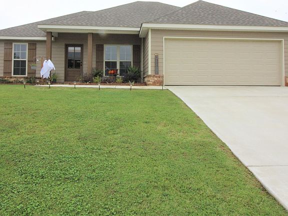 This beautiful, split plan, open concept home is pristine and only 2 years old. With plenty of windows and light, designer colors, this home has an open, airy feel that is very welcoming. Bedroom floors are carpet with vinyl plank in the remainder of the home. Beautiful granite counter tops accent the home throughout. The attic is accessed via pull-down stairs. Approximately 3/4 of the area above the garage is floored for ample storage. The front porch has room for sitting and enjoying coffee in the morning and your favorite beverage in the evening while overlooking the wonderfully landscaped yard. There is also a small, covered back porch. Mineral Creek Landing has a pond for fishing!