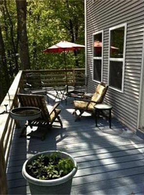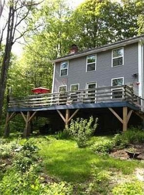 Delightful Cottage style home nestled in the woods at the end of a private drive, part of a 12 unit community known as Wildwood. Access to walking trails among 35 wooded acres. Features include: Open kitchen and living area w/stone frpl w/woodsstove, lg deck, 2 bdrms, 1 baths and wd floors. The house is surrounded by gardens, easy to heat, many updates have been done, low maintenance living. Brokered And Advertised By: COLDWELL BANKER UPTON-MASSAMONT Listing Agent: Wanda Mooney