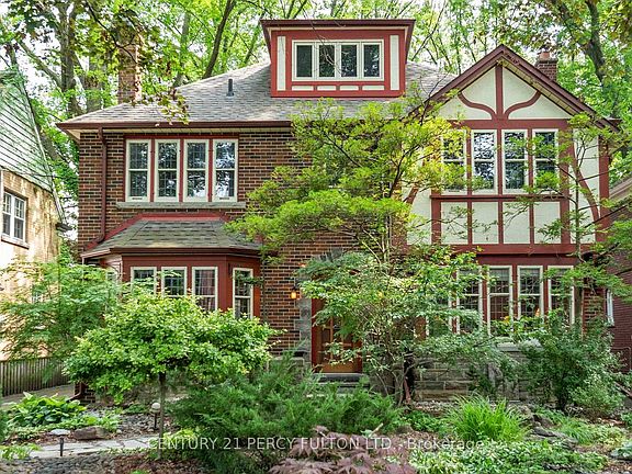Elegantly blending timeless charm with modern luxury, this magnificent 5+1 bedroom, 5-bathroomTudor-style residence in Toronto's prestigious Kingsway neighborhood is available for the first time in 50 years. Set on a quiet, tree-lined street, this home showcases classic European architecture on a beautifully landscaped lot. Key Features: 5 Spacious Bedrooms + Private Guest/Nanny Suite 5 Bathrooms, including a Spa-Inspired Ensuite Prime Kingsway Location Minutes from top schools, parks, subway, shops, cafés, and dining Private Drive with Detached Garage | Landscaped Garden Oasis Striking Details: The homes authentic Tudor façade features half-timbering, leaded glass windows, and steep gables, exuding old-world charm. Inside, a grand foyer with original oak paneling sets a tone of classic elegance. The French-style chefs kitchen, a culinary masterpiece, features granite and tile countertops, premium appliances, and custom cabinetry. A sun-drenched family room with a walkout opens to a serene backyard retreat, perfect for relaxation and gatherings. Elegant formal dining and living rooms are ideal for hosting guests. The master bedroom offers a private retreat with a spacious walk-in closet and a spa-like ensuite. The second floor provides four generously sized bedrooms and two additional bathrooms. The third floor is a private loft with its own ensuite, ideal for guests or a peaceful office. The finished lower level is an entertainers dream, complete with a rec room, bar, guest suite, and cold room. Step outside to your professionally landscaped garden oasis. This private outdoor sanctuary is perfect for alfresco dining or simply unwinding. Living here offers an unmatched lifestyle of convenience and luxury, with easy access to the Humber River, nearby parks, and vibrant local amenities in one of Toronto's most desirable neighbourhoods.